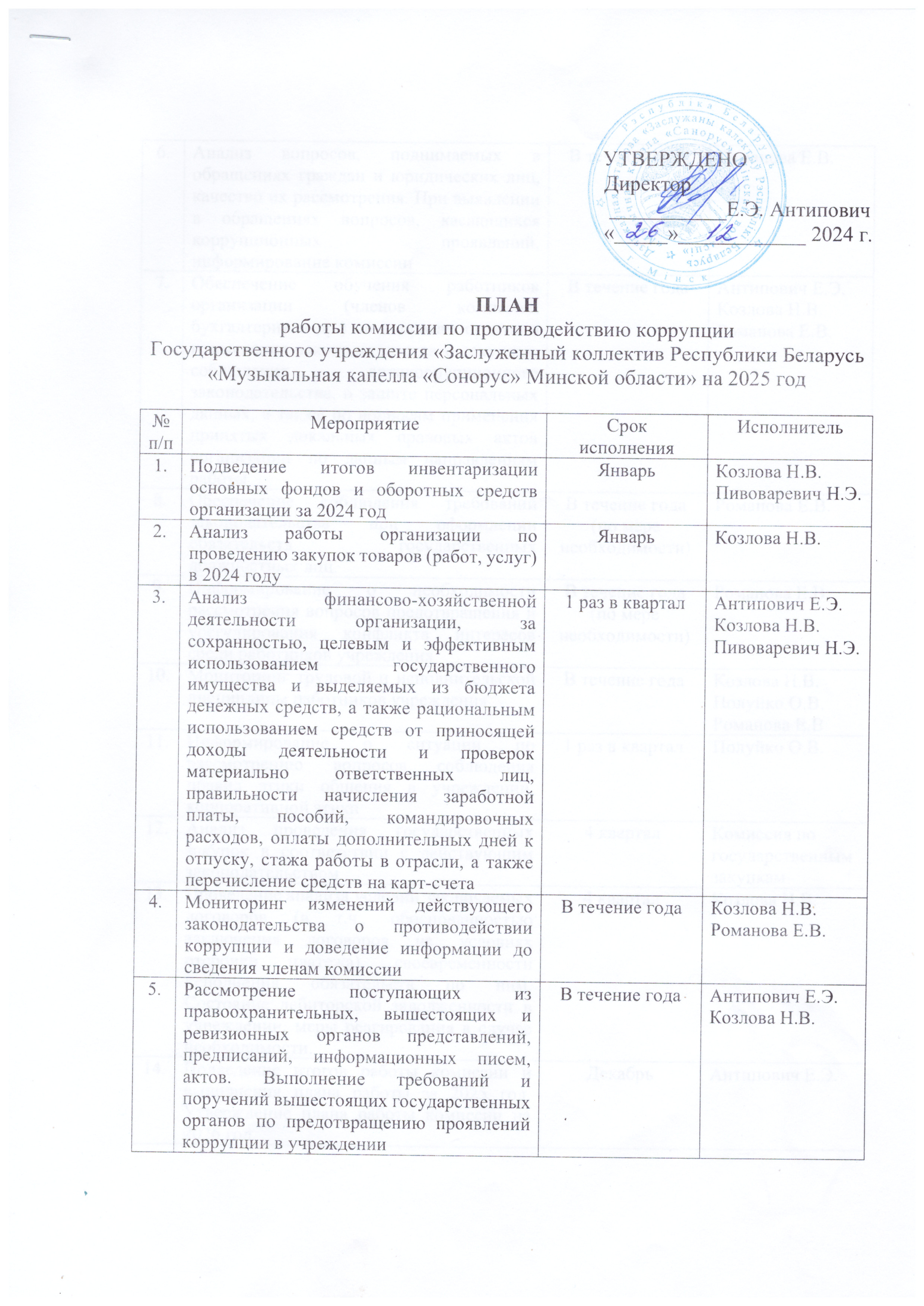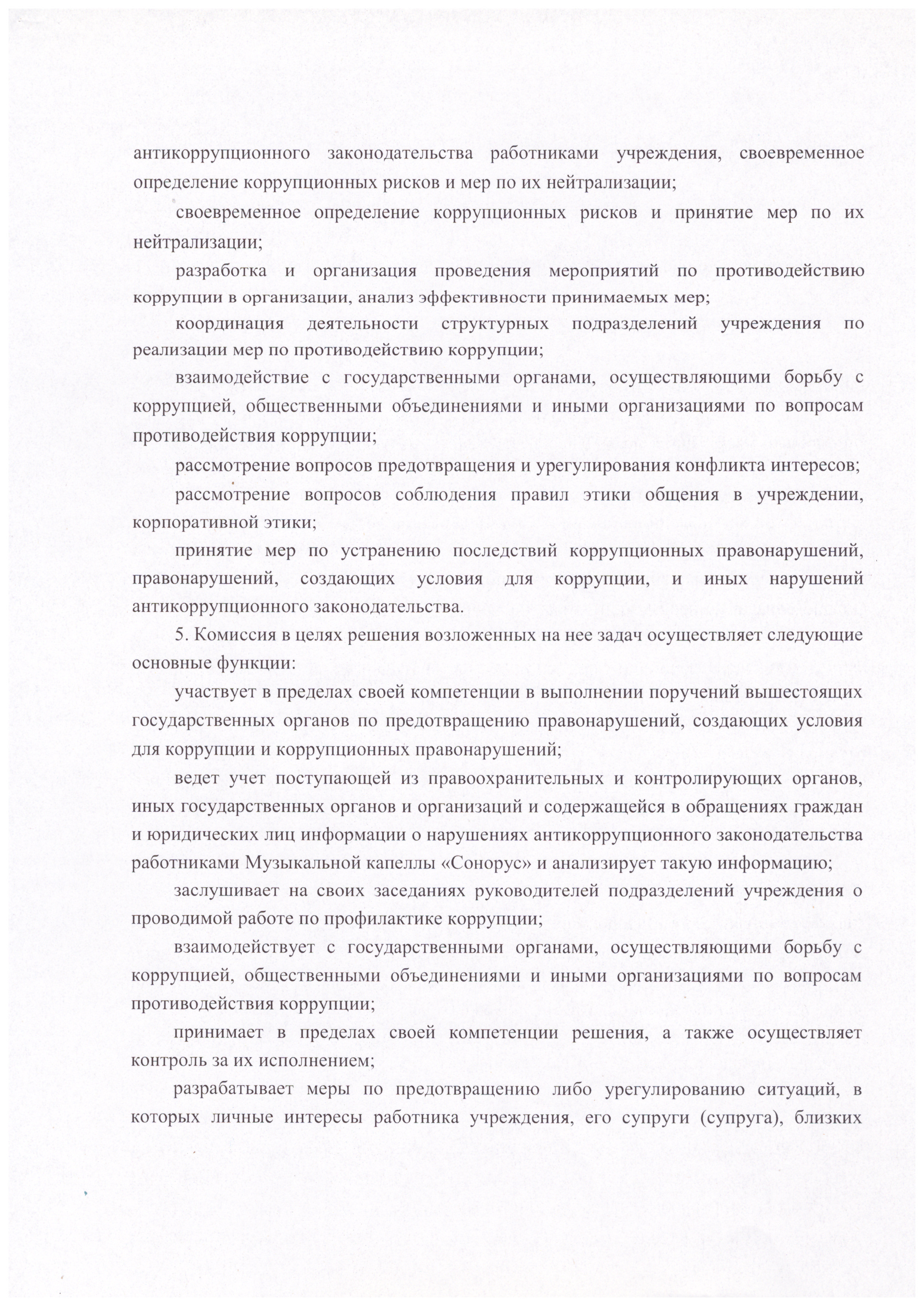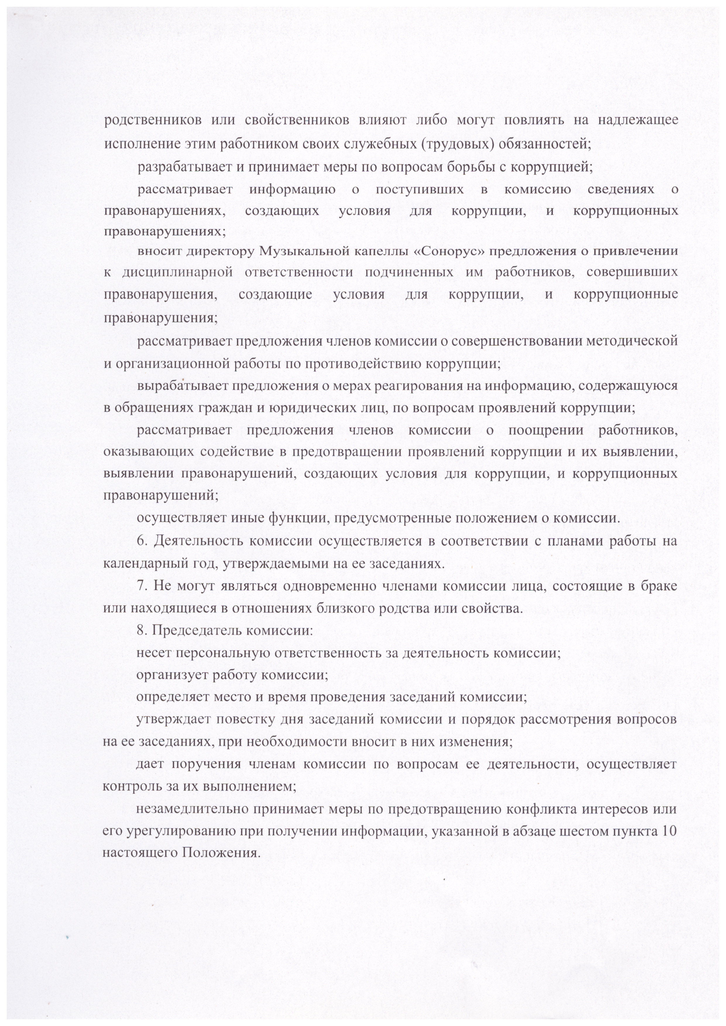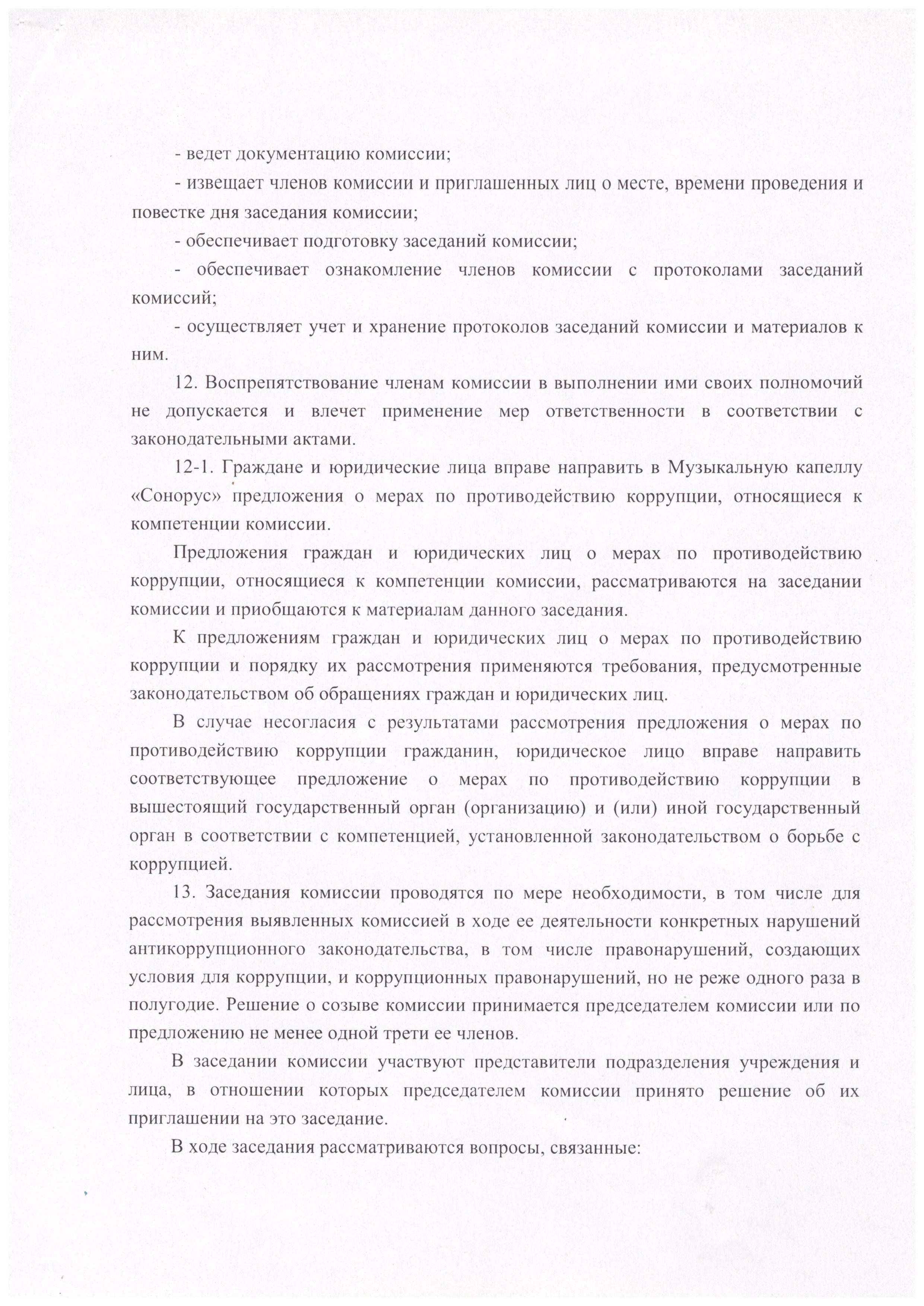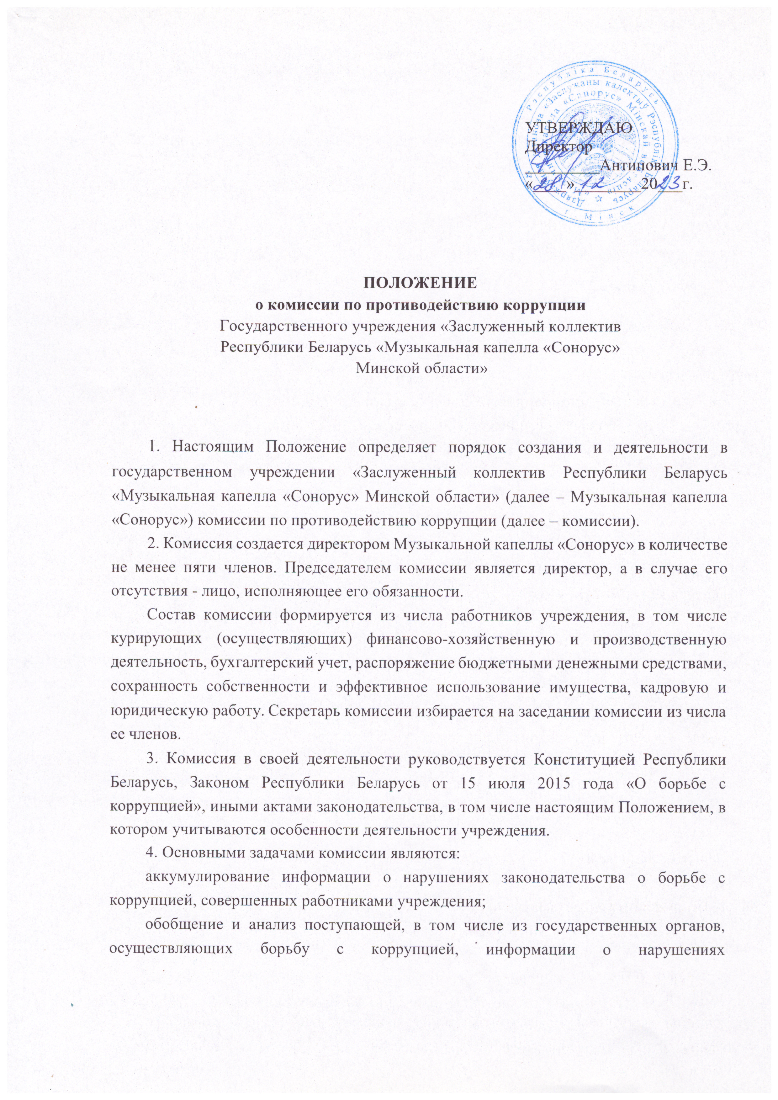 ПОЛОЖЕНИЕ о комиссии по противодействию коррупции Государственного учреждения "Заслуженного коллектива Республики Беларусь "Музыкальная капелла "Сонорус" Минской области"