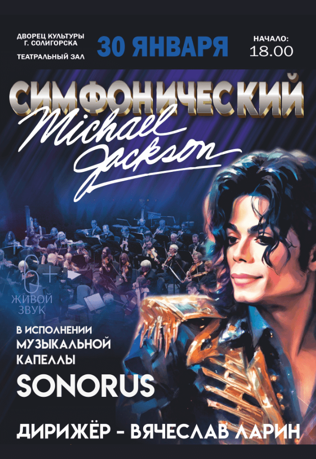 Концерт «Симфонический Майкл Джексон» в невероятных аранжировках – это тот вечер, который запомнится надолго. Масштабное шоу в исполнении солистов, хора и оркестра. Заслуженный коллектив Республики Беларусь Музыкальная капелла «Сонорус» Минской области представит совершенно новое воплощение бессмертной музыки.